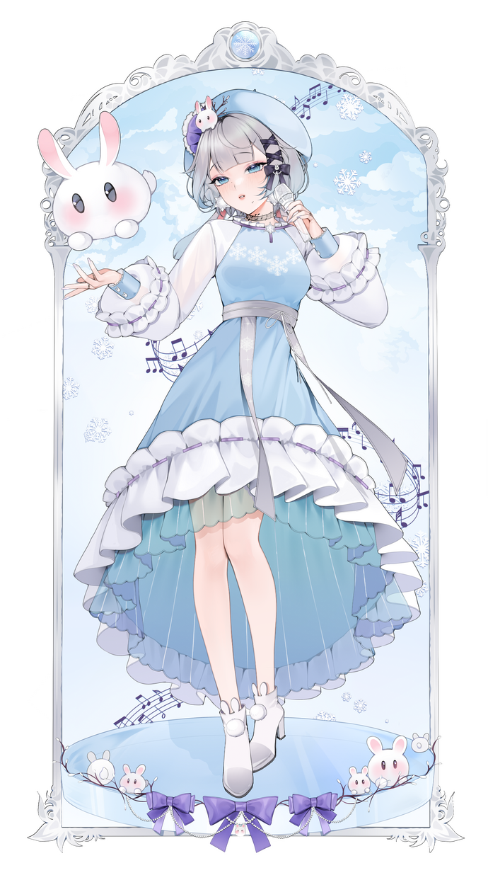 The way to my soul is through ice-cream, bunnies, and your voice.Ari Anjou is a snow rabbit who takes interest in the many wonders of human creativity.As she reaches for the glittering stars - her little joys in life - they always seem to shatter and turn into a never-ending snowfall, painting her world into a lonely, white emptiness. The beautiful sky haunts her with depictions of a perfect life.The snow turns the gentlest of light into blinding rays. The warmth of the sun cannot reach her numb, frost-bitten self. All that's left is an alluring berceuse:Nothing is ever enough.Like a snow rabbit cursed from birth to a lifetime atop the highest of mountains, she lives in the dark, holding tight all that is dear to her.And so, the rabbit hums along with this interminable tune, completing the curse that binds her to this life, a harmony line that would fall apart should the fickle winds stop singing."And yet, I want to live."